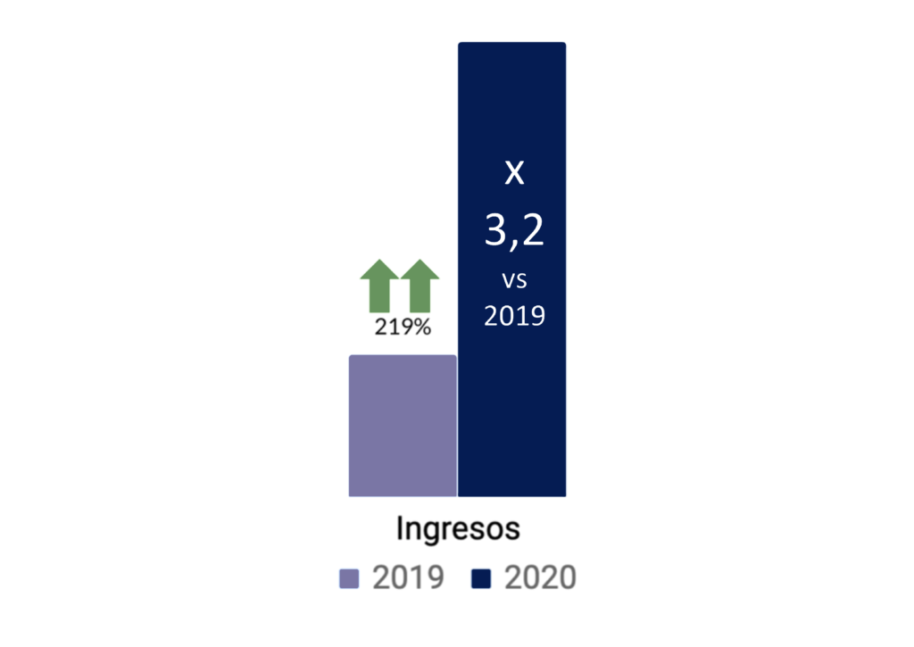 En conclusión, como resultado, los ingresos se han visto multiplicados por 3,2 respecto al año 2019