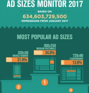 Les formats publicitaires préférés en 2017 sur mobile montrent la dominance du 300×250 qui représente 22% des impressions sur mobile selon une étude d’AdPiler. Sur tablette, le format le plus populaire est le leaderboard en 728×90.