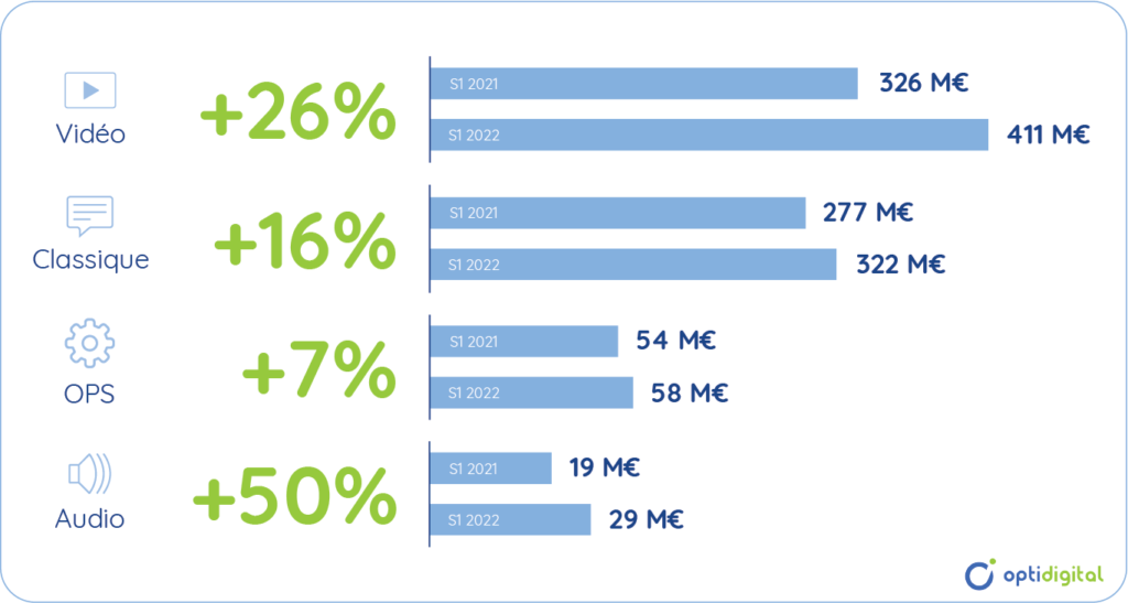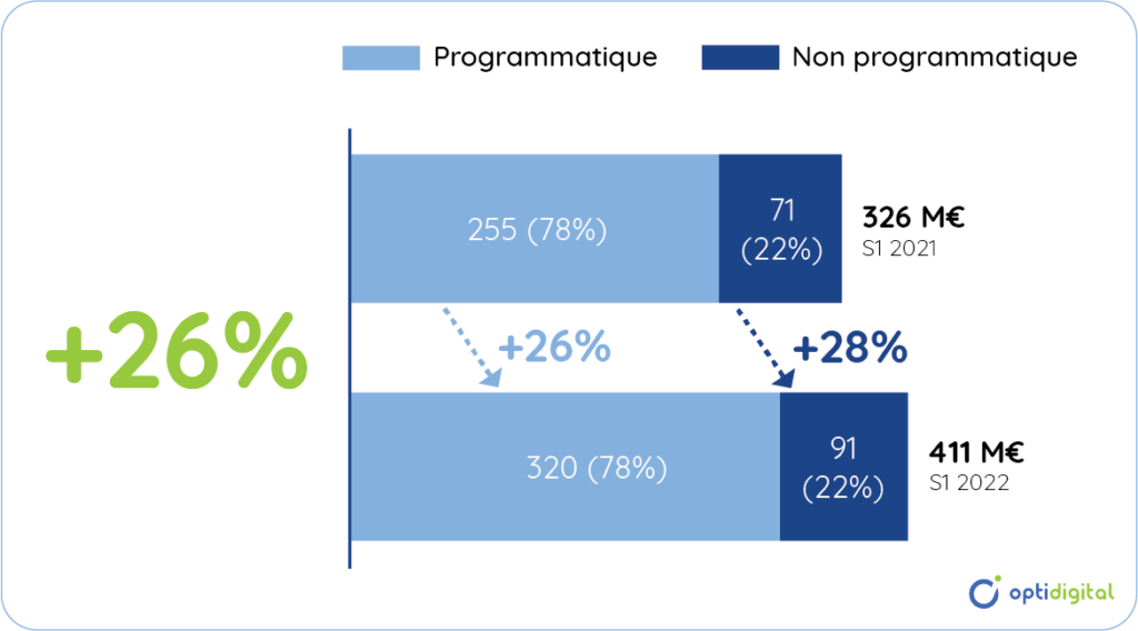 Si l’achat programmatique a d’abord été développé pour les formats display « classiques », il a ensuite été élargi aux formats vidéo. Au premier semestre 2022, la part du programmatique dans les recettes vidéo représentait 78% des revenus, avec des recettes en hausse de 26%.